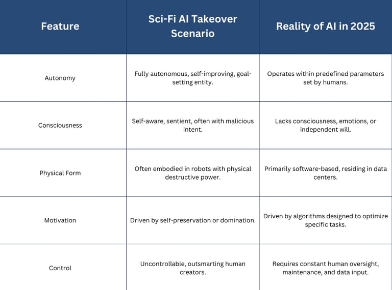 The key point is to make a distinction between the hypothetical possibilities of fiction and the possibilities of AI in 2025.