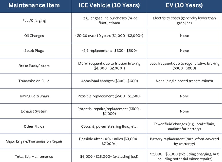 EV vs. ICE Vehicle Maintenance Comparisons of Battery Costs.